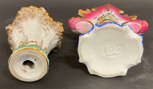 Manifatture differenti, lotto di cinque vasetti in porcellana policroma con figure e decori naturalistici (h max cm 23) (difetti)