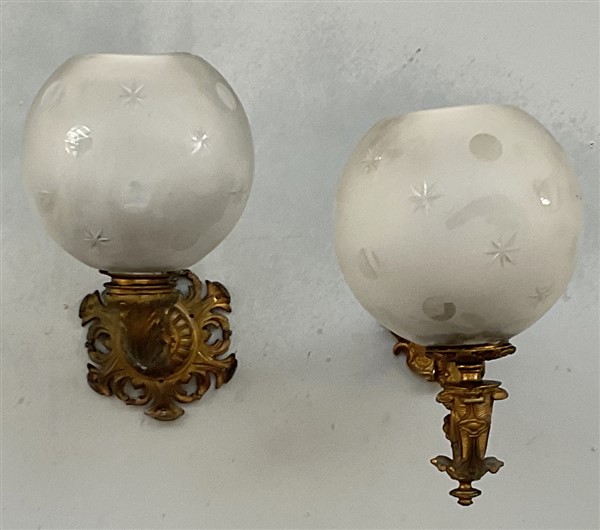Lotto composto da due applique diverse in bronzo con coprilampada decorato a mo