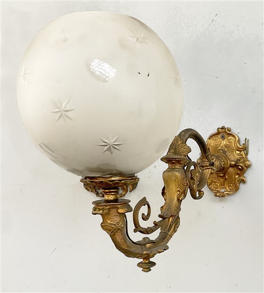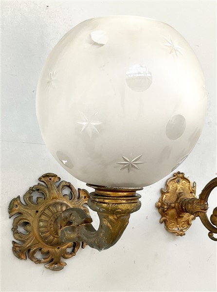 Lotto composto da due applique diverse in bronzo con coprilampada decorato a motivi stilzzati a stella