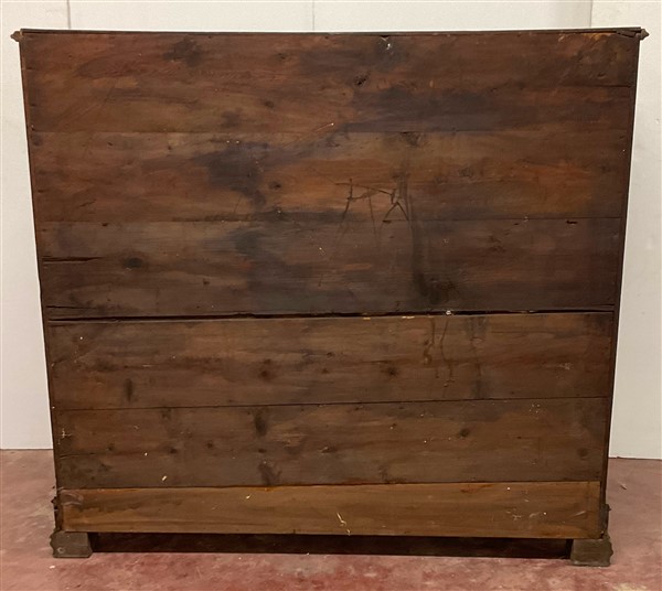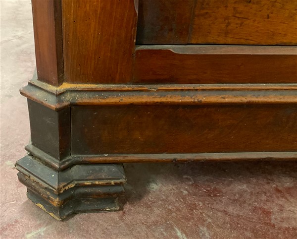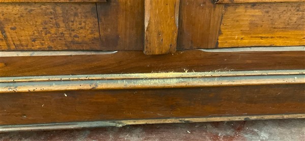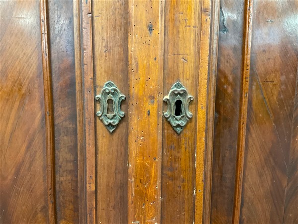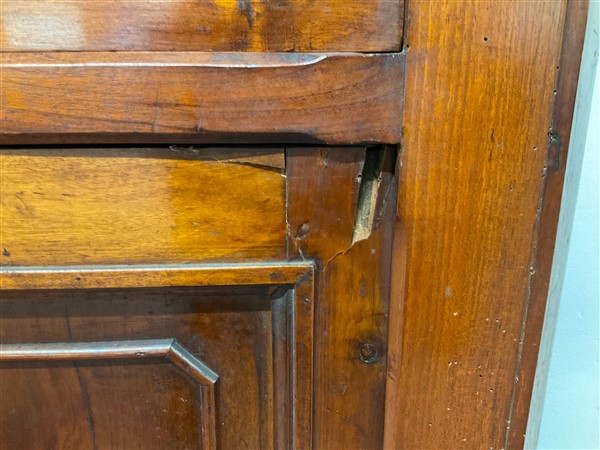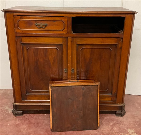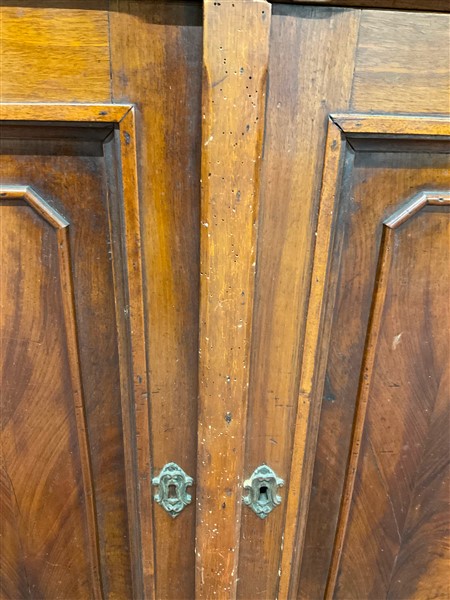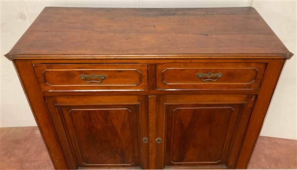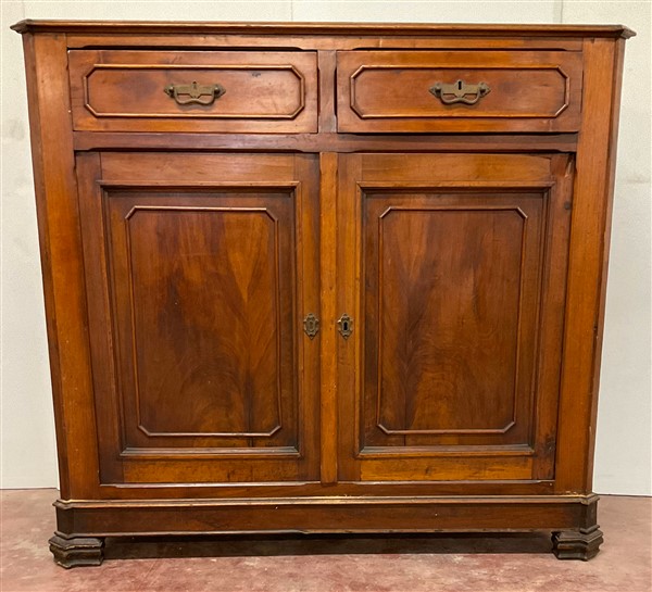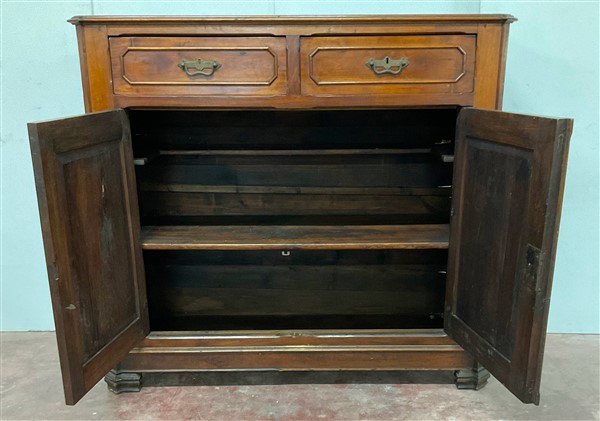 Credenza intagliata a due cassetti e due ante riquadrate. Secolo XIX (cm 145x134x60) (lievi difetti)