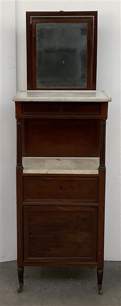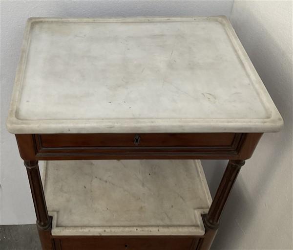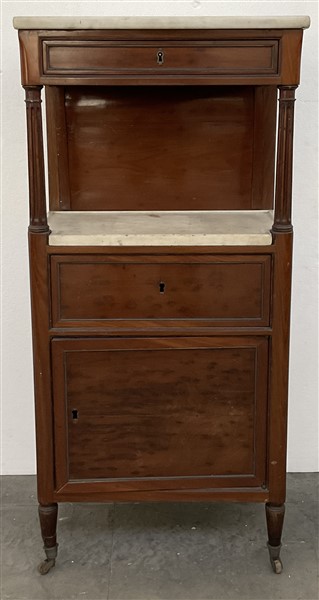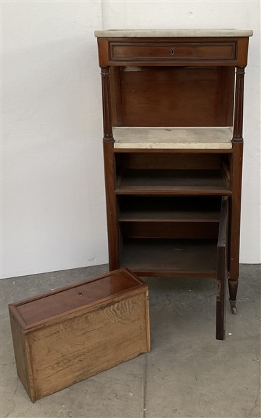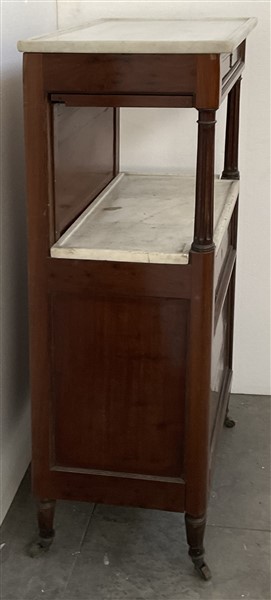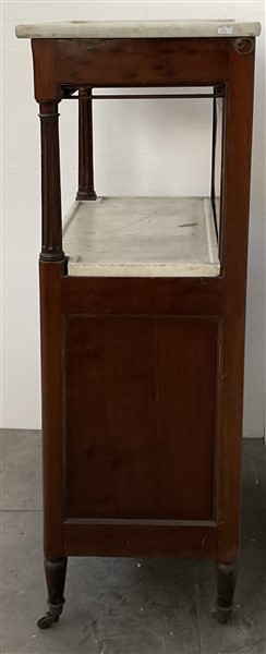 Mobile intagliato con ripiani in marmo (cm 56x122x38) (difetti)
