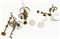 Tre cartoni contenenti parti di lampadari, lampade ad olio in ottone montate a
