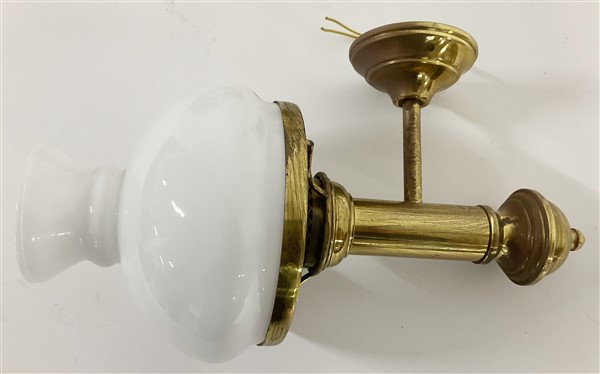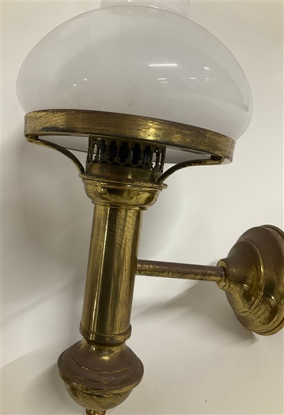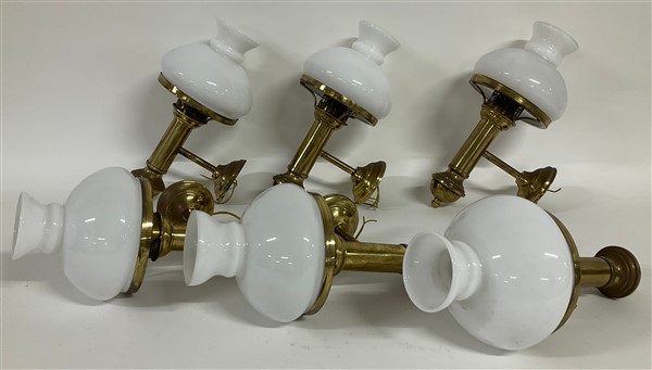 Lotto composto da sei appliques in ottone con paralume in vetro lattimo (difett