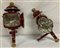 Coppia di fanali da carrozza in ferro smaltato bordeaux con elementi in metallo