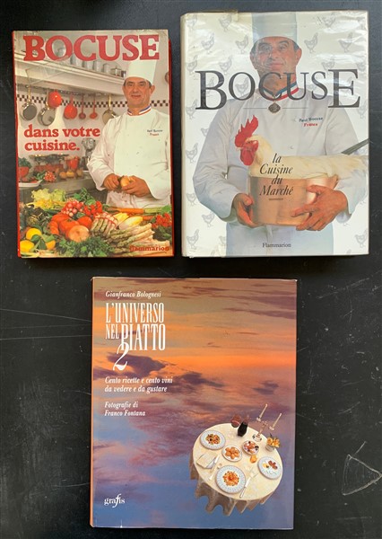 Lotto composto da tre volumi inerenti la cucina e la gastronomia, riccamente illustrati, in lingua italiana e francese