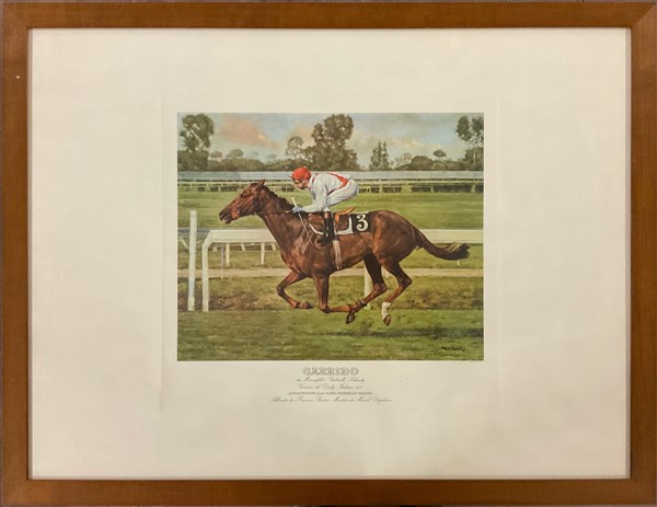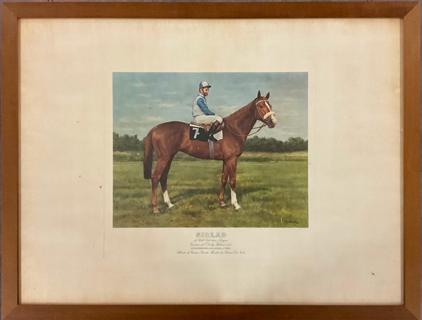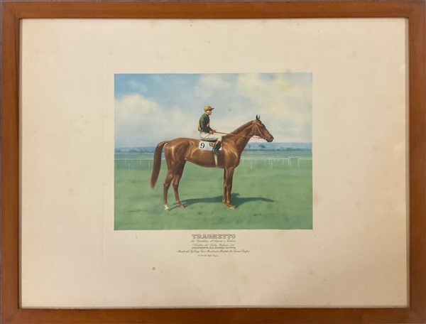 Lot 2351 | Gruppo di sei fotocalcografie a colori raffiguranti cavalli da corsa con fantin