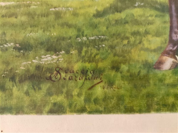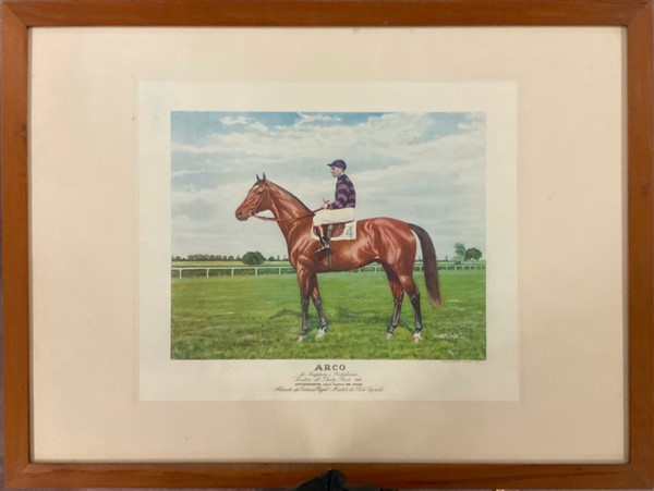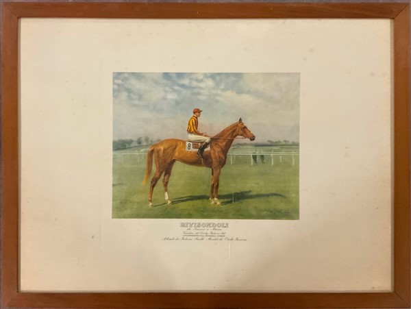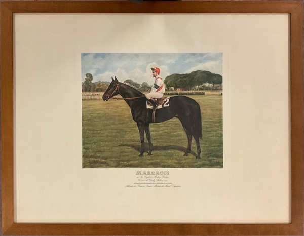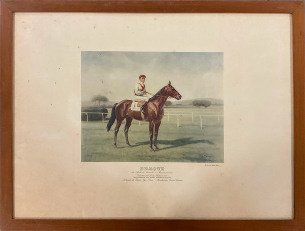 Gruppo di quattro fotocalcografie a colori raffiguranti cavalli da corsa con fa