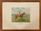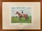 Gruppo di quattro fotocalcografie a colori raffiguranti cavalli da corsa con fantini (cm 65x88) in cornice (difetti)