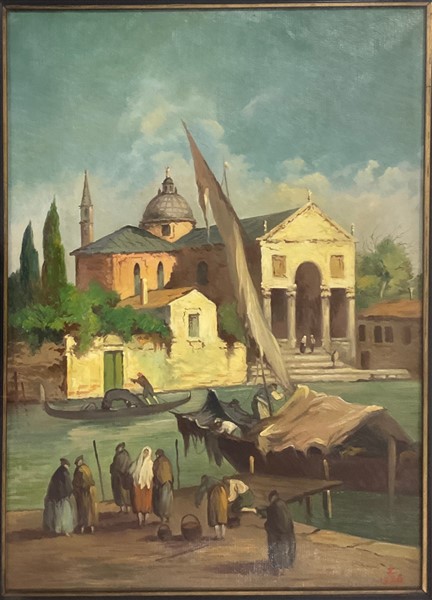Ignoto del secolo XX "Venezia" 1926, olio su compensato (cm 50x34) datato e monogrammato in basso a destra. In cornice