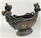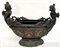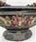 Manifattura austriaca, J. Maresch, fine secolo XIX. Centrotavola in terracotta decorato in policromia su fondo nero, a coppa con anse a figure femminili reggenti cornucopie. Fascia con grifoni e busto maschile a rilievo entro scudo, bordi baccellati. Marca impressa nel fondo (cm 62x49x29) (difetti e rotture)