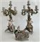 Lotto in porcellana composto da una coppia di candelabri a cinque fiamme con fu