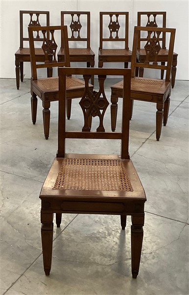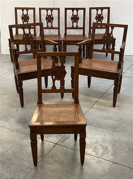 Lotto composto da dodici sedie e due poltrone in stile Luigi XVI di simil decor