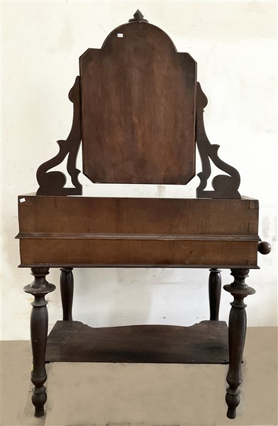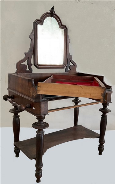 Toilette in noce con fronte a un cassetto e gambe tornite riunite da pianetto,