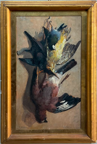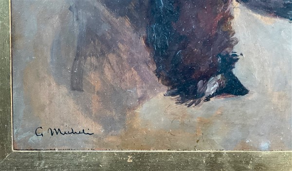 Guglielmo Micheli "Cacciagione" olio su compensato (cm 54x29) Firmato in basso
