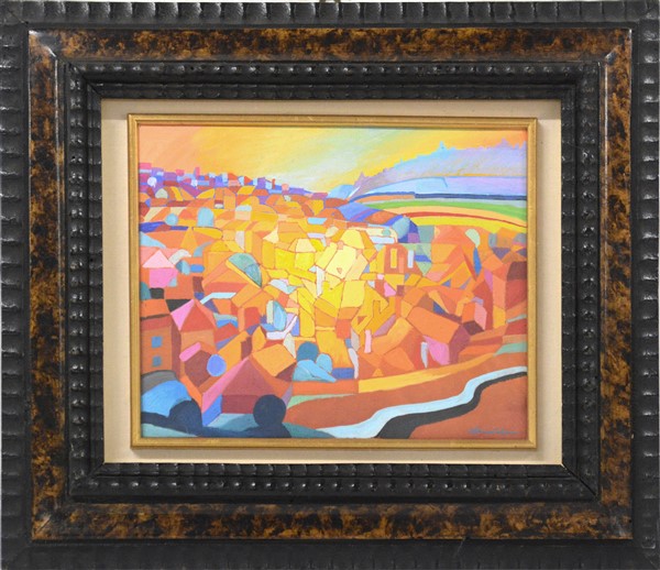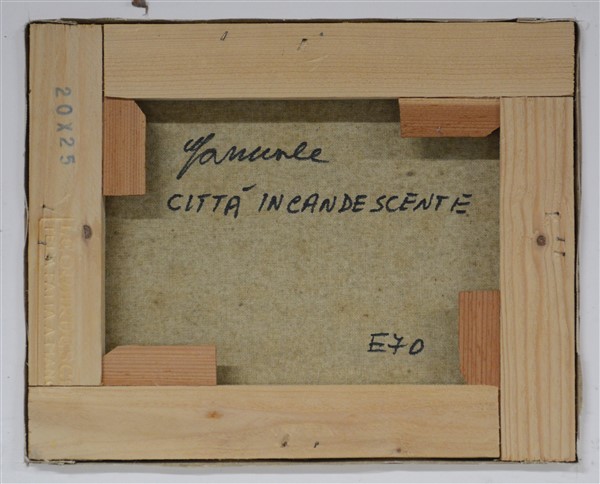 Enrico Carnevale Schianca "Città incandescente" acrilico su tela (cm 20x25), fi