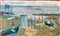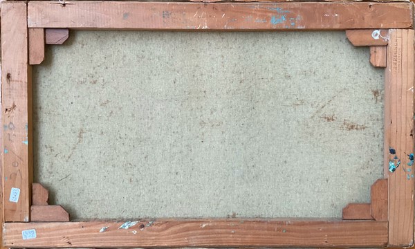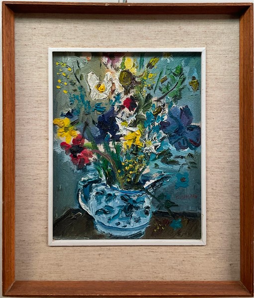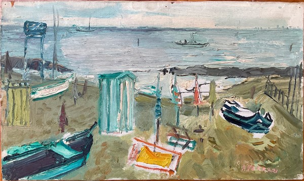 due oli su tela raffiguranti rispettivamente spiaggia e vaso con fiori, di misure diverse (cm 30x50 e cm 29x23), firmati in basso a destra. Uno in cornice (lievi difetti)
