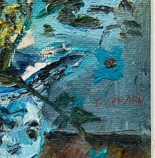 Angelo Ferrari due oli su tela raffiguranti rispettivamente spiaggia e vaso con