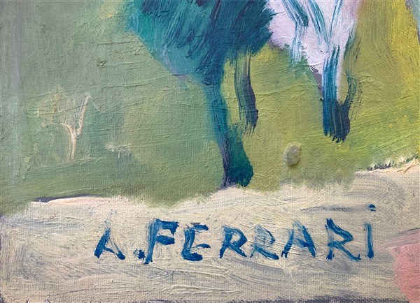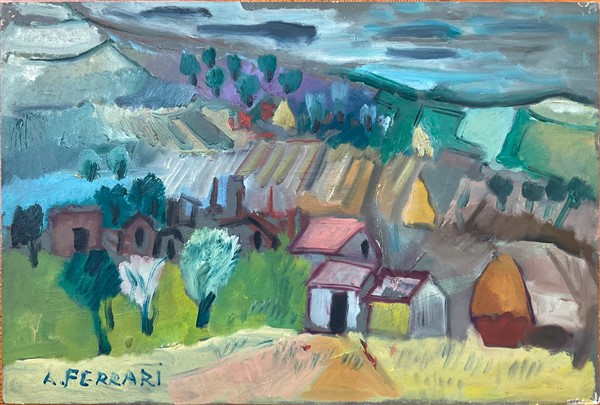 Angelo Ferrari due oli su cartone telato raffiguranti rispettivamente paesaggio