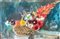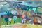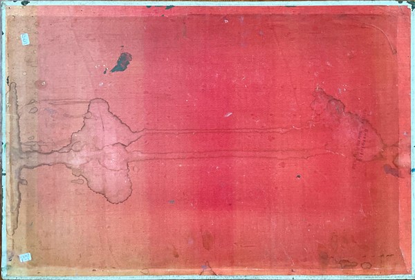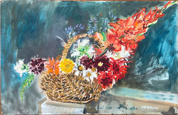due oli su cartone telato raffiguranti rispettivamente paesaggio con case e vaso con fiori, di misure diverse (cm 39x59 e 40x60), firmati in basso. Uno in cornice (difetti)