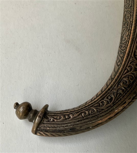 Elegante Kumya, Marocco, secolo XIX. Impugnatura in legno di palma ed inserti i