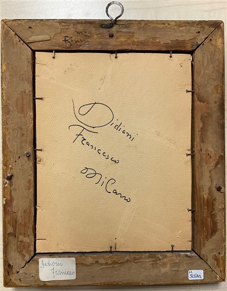 Francesco Didioni (Attr) "Fra Cristoforo" olio su cartone (cm 21x16,5) Siglato "D. F." in basso a sinistra, attribuito al retro. In cornice (difetti)