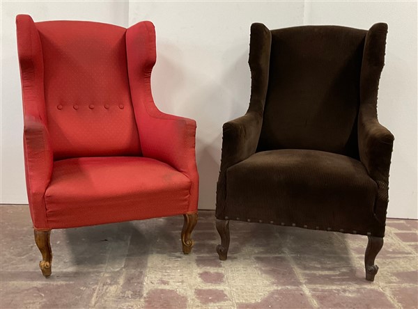Lotto composto da due poltrone con piedi anteriori intagliati e terminanti a ricciolo (difetti)