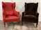Lotto composto da due poltrone con piedi anteriori intagliati e terminanti a ri