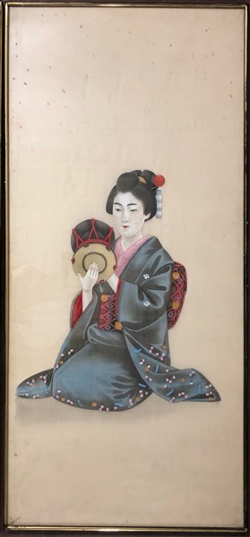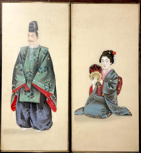 Due dipinti su seta raffiguranti personaggi giapponesi Giappone, sec.XX (h.max