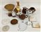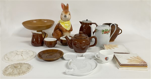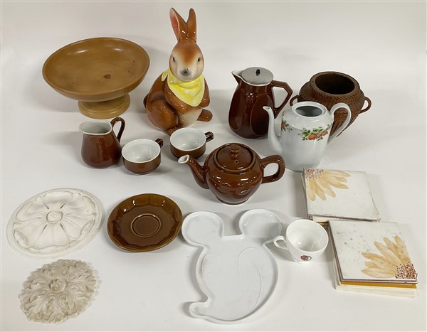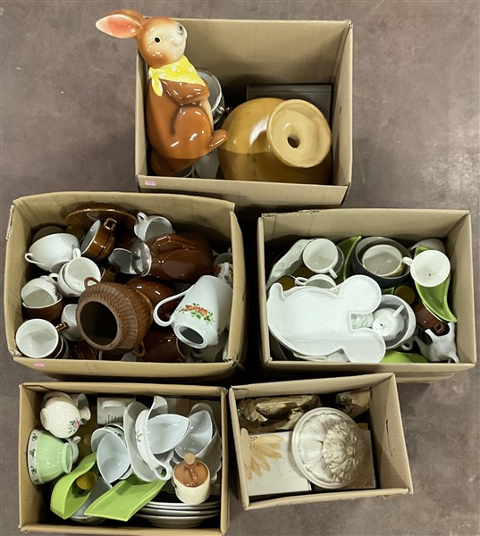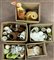 Lotto composto da cinque cartoni contenenti oggetti, parti di servizi e piastre