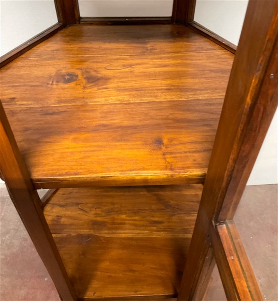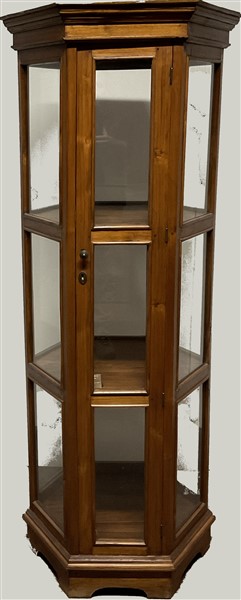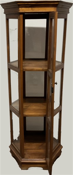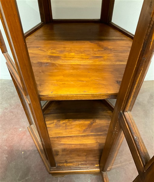 Vetrina da centro a sezione esagonale in legno ad un'anta e tre ripiani (cm 73x180x73) (lievi difetti)