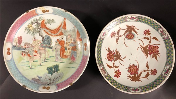 Due piatti in porcellana policroma Famiglia Rosa