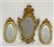 Lotto composto da tre specchierine in legno intagliato e dorato a volute, fiori e nastri (h. max cm 43,5) (difetti)