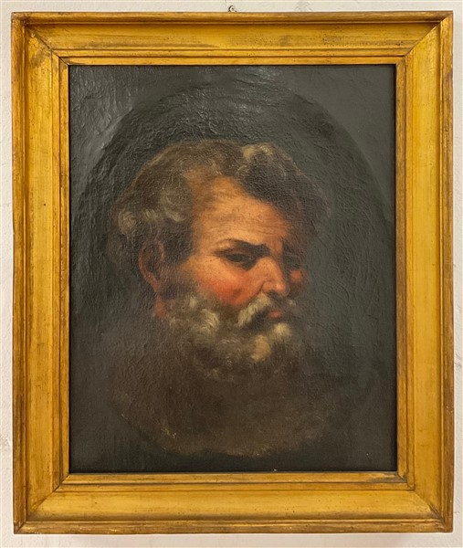 Ignoto, antico dipinto a olio su tela raffigurante testa virile (cm 57x45,5) In cornice (estesi difetti e restauri)