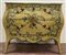 Cassettone di forma bombata dipinto a fiori in policromia. Piano in finto marmo (cm 110x86x47,5) (difetti e restauri)