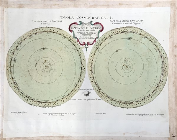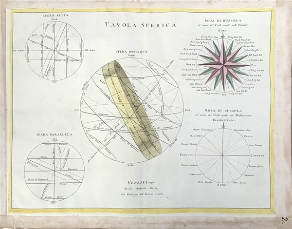 [MAPPE CELESTI - ZATTA] - Due mappe celesti incise in rame dallo Zatta nel 1777; la prima intitolata "Tavola Sferica" e la seconda "Tavola Cosmografica". (375 x 466mm). Colorate a mano all'epoca (difetti) [2]