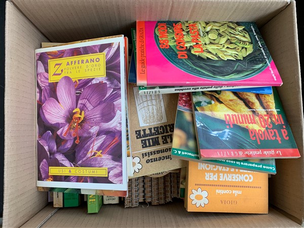 La cucina italiana. Un cartone contenente numerosi volumi della rivista unito ad un cartone contenente varie pubblicazioni inerenti la cucina e la gastronomia