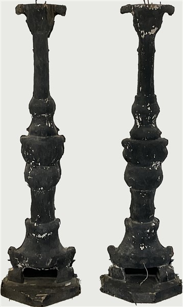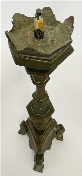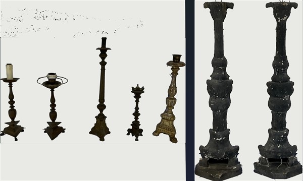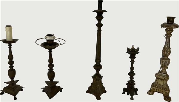 Lotto composto da diversi antichi candelieri in bronzo e materiali vari (h max cm 93) (difetti e mancanze)