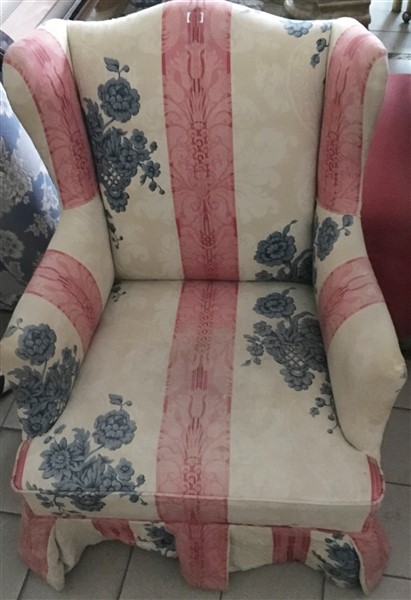 Lot 2605 | Poltrona imbottite in tessuto fiorato a righe (difetti)