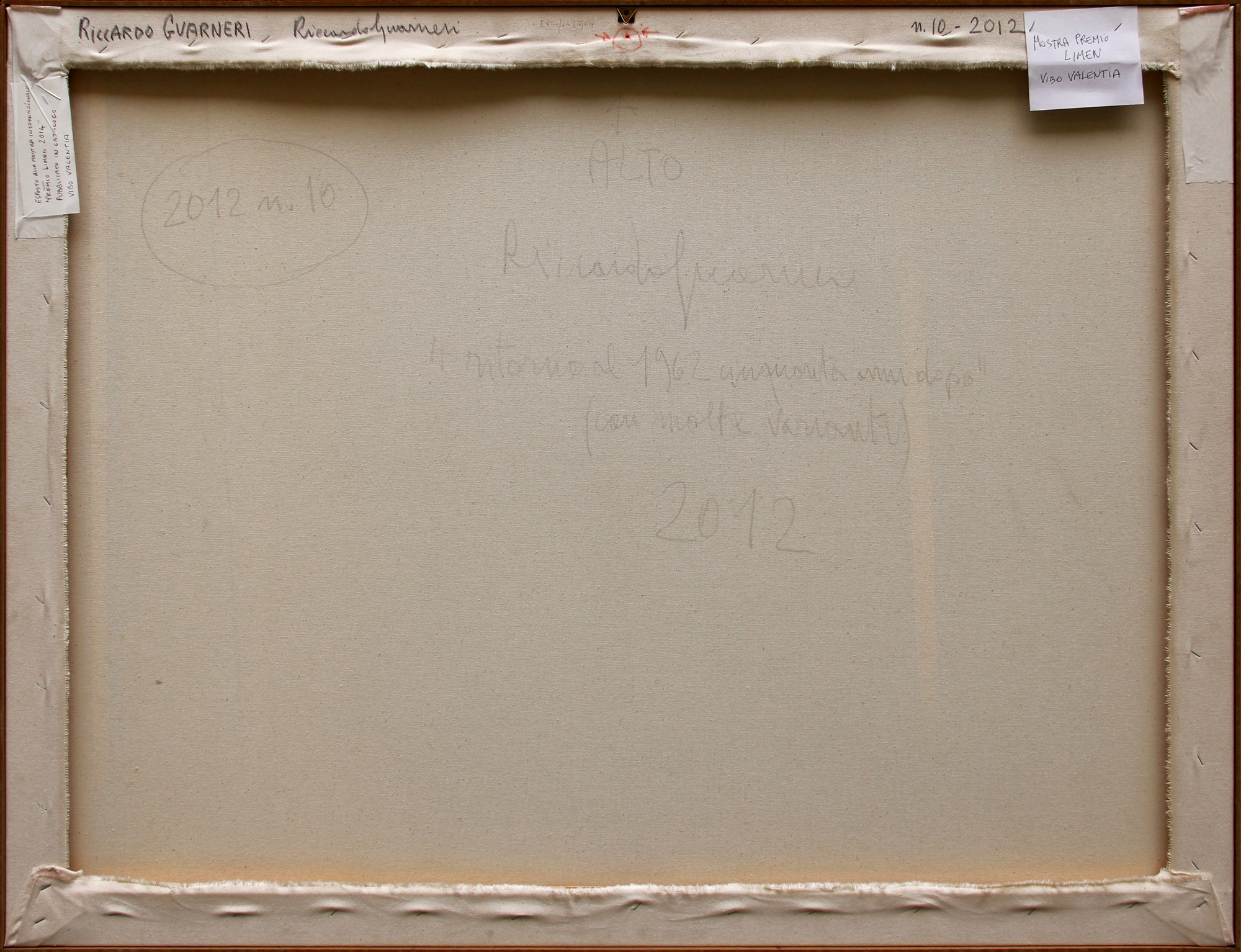 Firma, titolo, data "Riccardo Guarneri, Ritorno al 1962 cinquant'anni dopo (con molte varianti), 2012" (al retro)