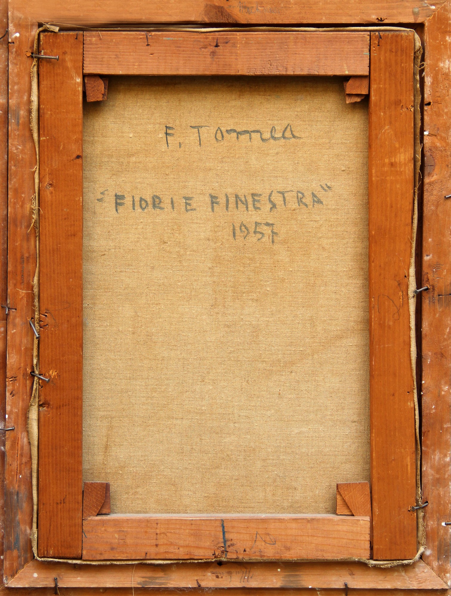 Firma, titolo, data "F. Tomea, Fiori e finestra, 1957" (al retro)