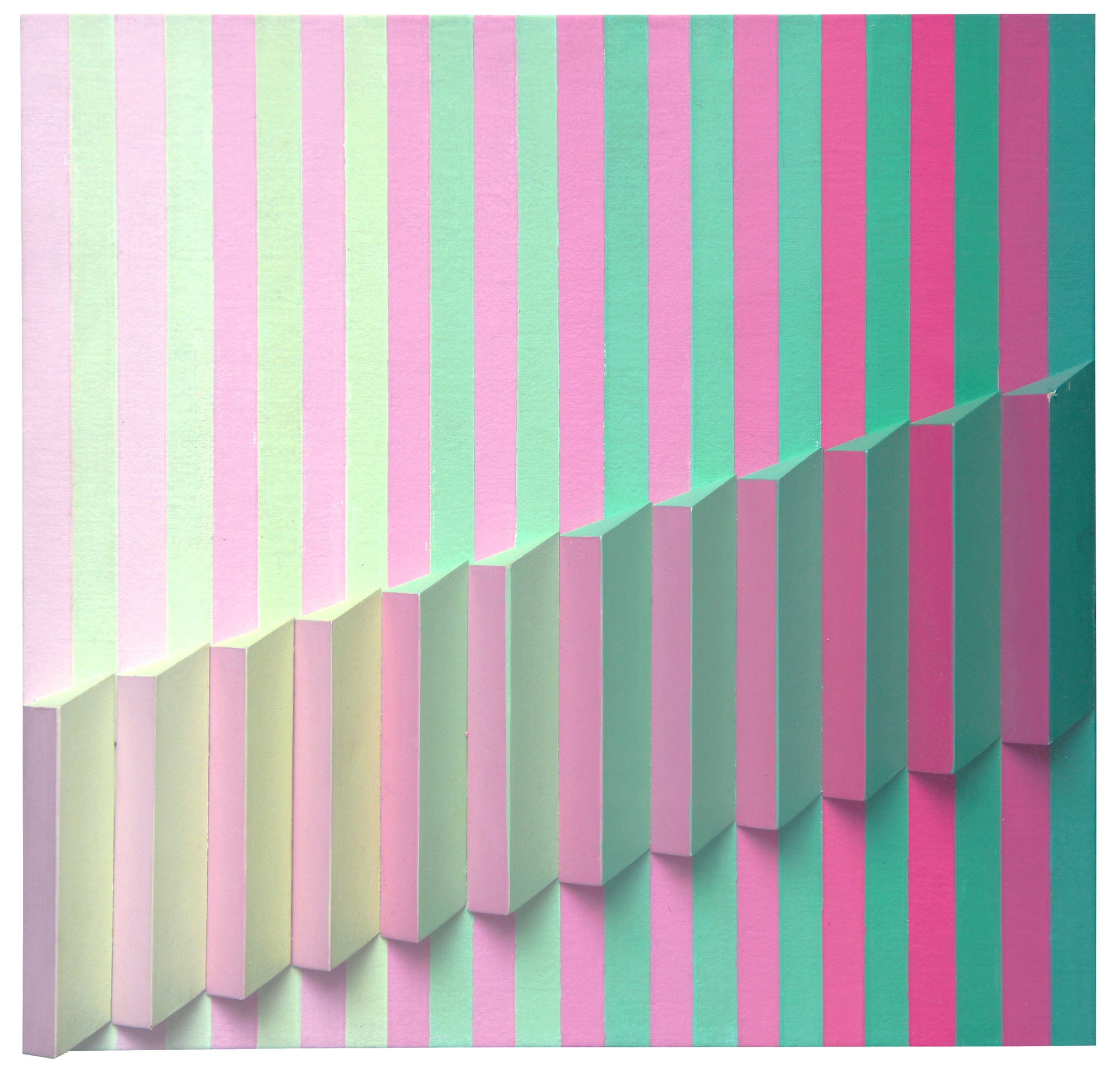 Cromoplastico 191, 1990, acrilico e applicazioni di legno su tela applicata su tavola, cm 30x30