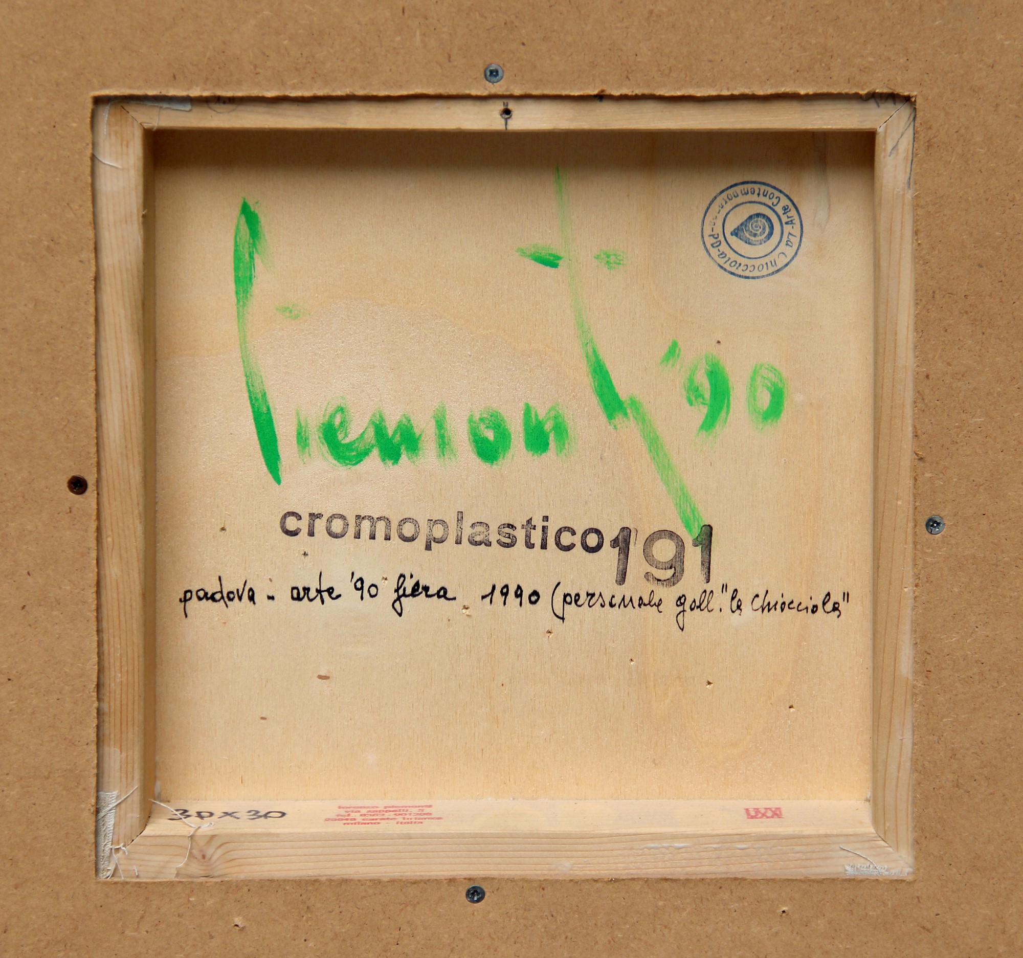 timbro di Galleria La Chiocciola, Padova (al retro)