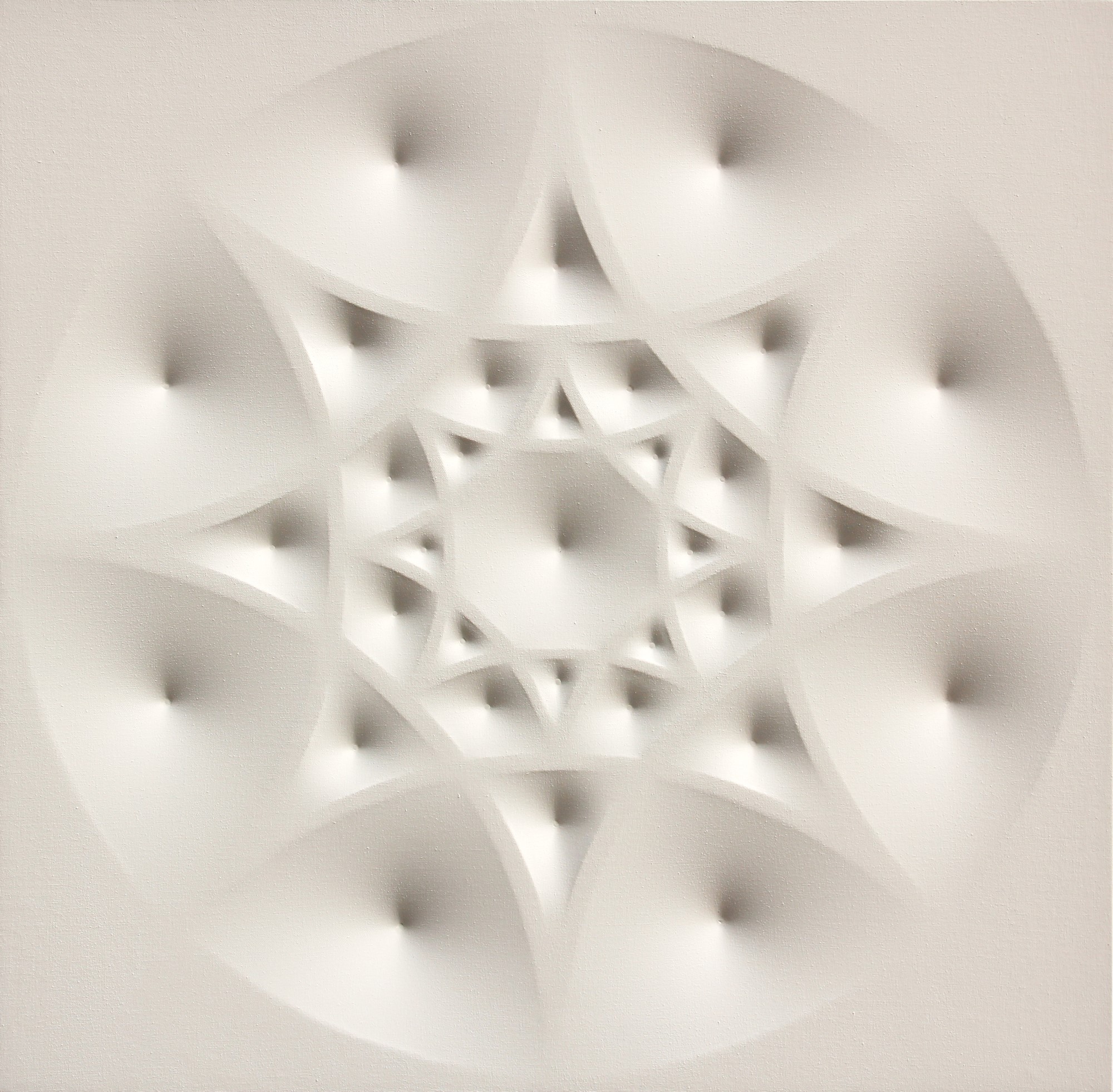 Progressione radiale gotica, 2015, acrilico su tela estroflessa riportata su tavola, cm. 80x80