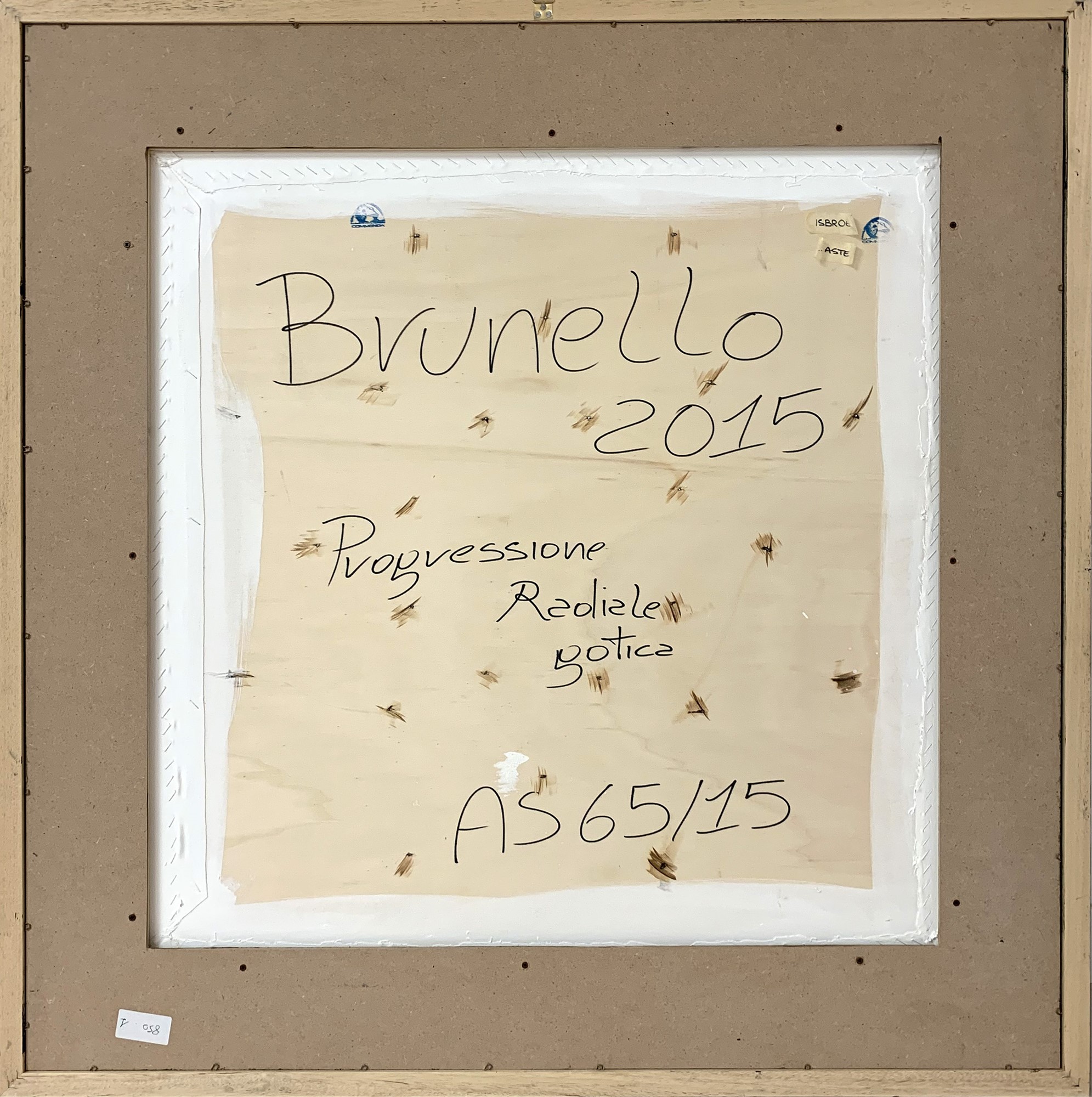 Firma, data, titolo, numerazione "Brunello, 2015, Progressione radiale gotica, AS65/15" (al retro)