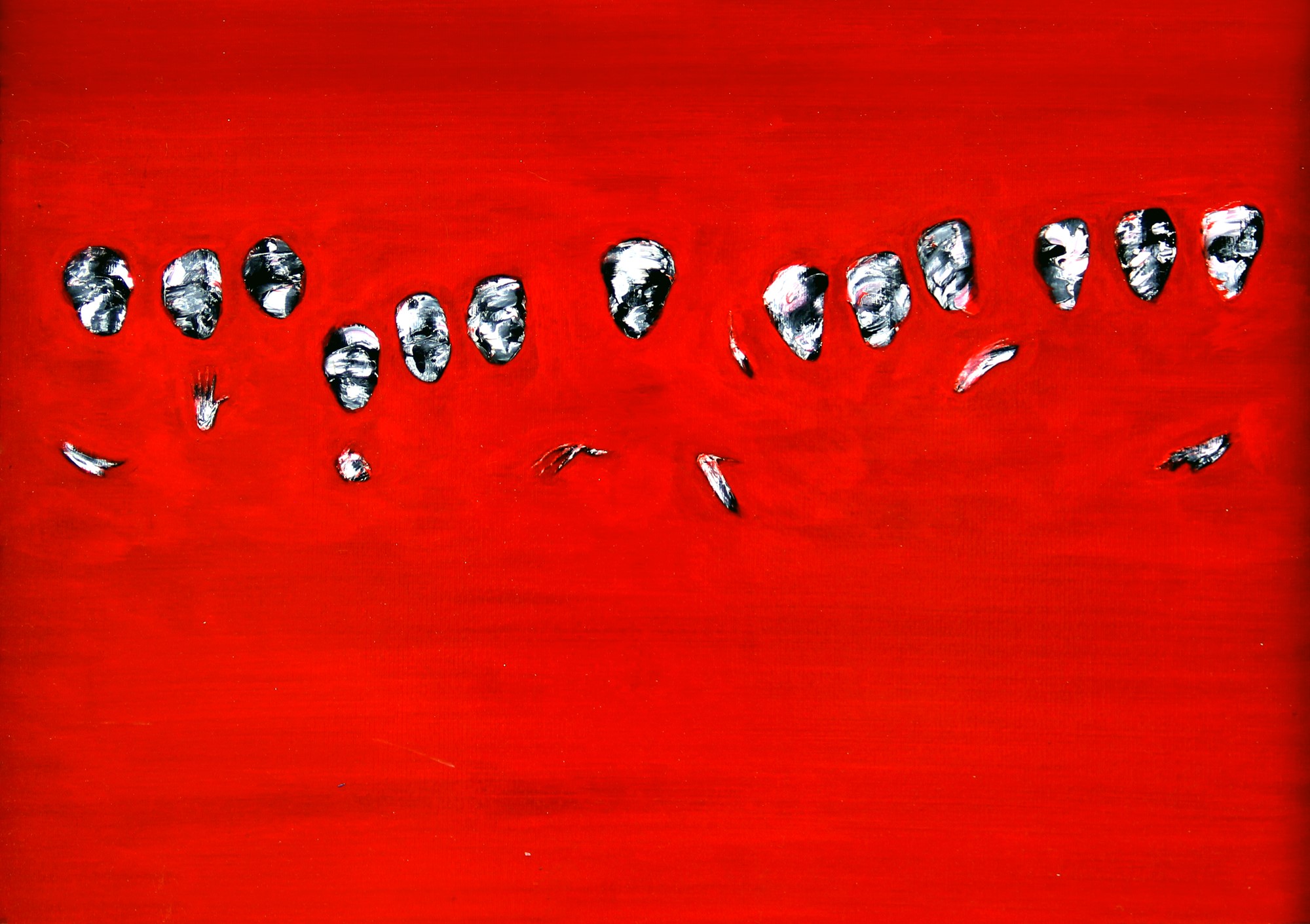 Il grande sacrificio (red), 2021, olio su tavola, cm 50x70