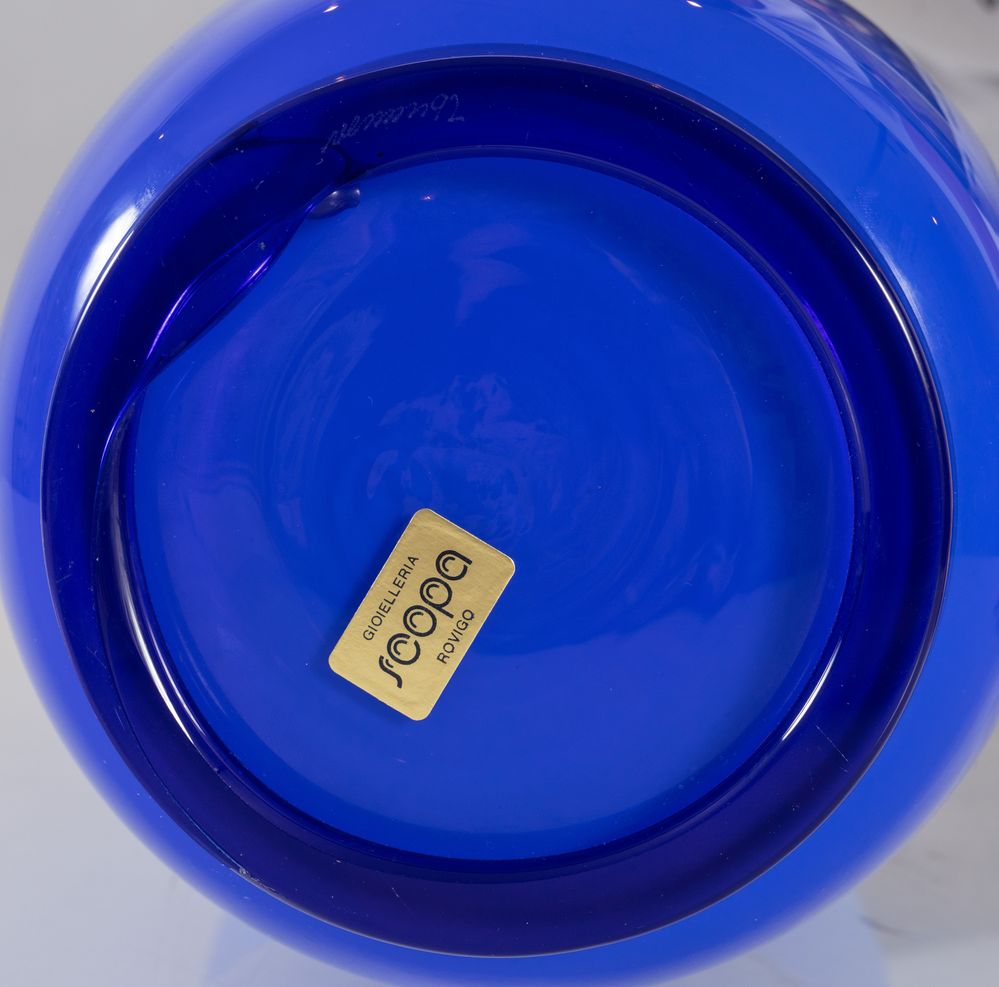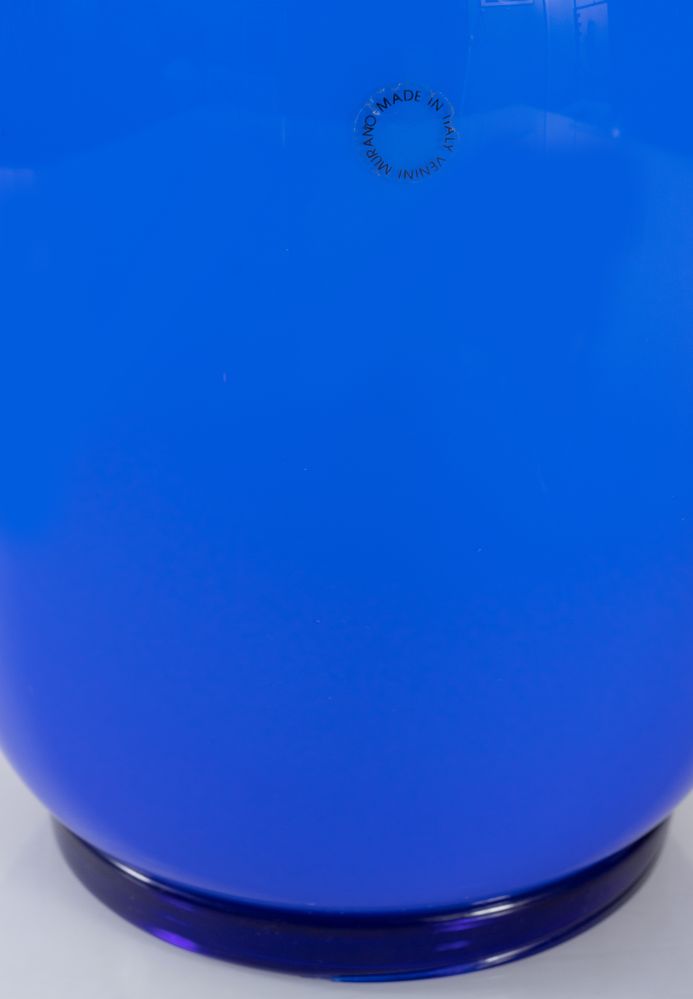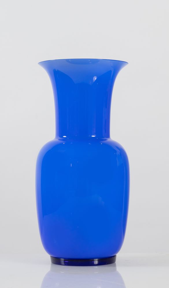 PAOLO VENINI Vaso in vetro soffiato modello 'Opalino'. Firma del produttore. Prod. Venini, Italia, 1992 Cm 36x18x18