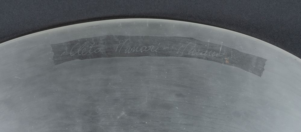 CLETO MUNARI Piatto in vetro molato con applicazioni di murrine modello "Primavera" della collezione 'Cromatic Transparencies'. Firma del produttore incisa. Prod. Cleto Munari, Murano, 2004 Cm 10,5x45,5x45,5