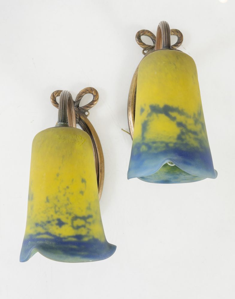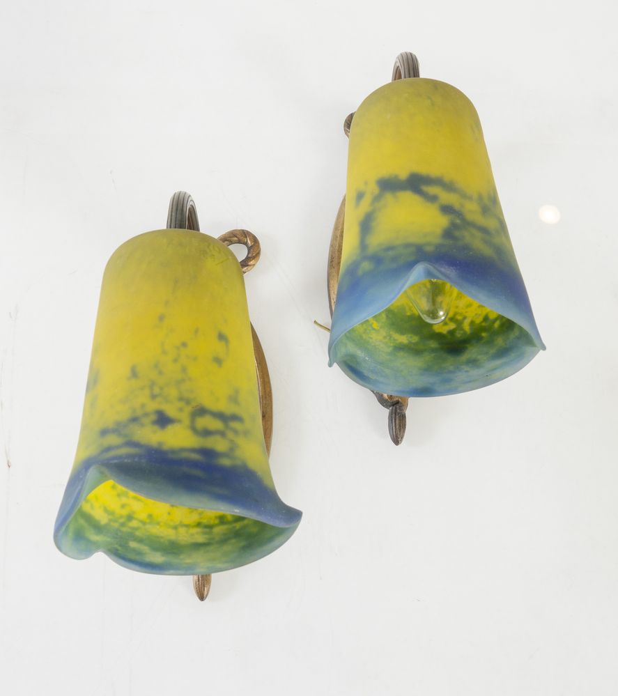 JEAN NOVERDY Coppia di applique da muro con struttura in metallo e paralume...