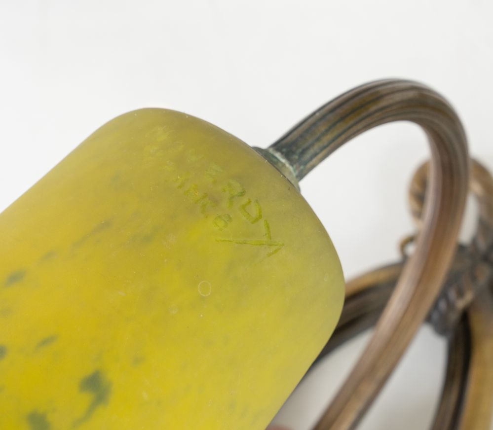 JEAN NOVERDY Coppia di applique da muro con struttura in metallo e paralume in vetro satinato. Firma del produttore. Prod. Noverdy, Francia, 1930 ca. Cm 23x19x10