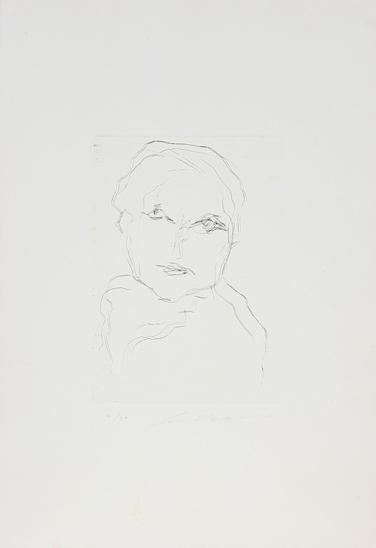 TRECCANI ERNESTO (1920 - 2009) Senza titolo. 1974. Litografie. . Cartella composta da cinque litografie e due acqueforti:1) tir.75/100 cm70x50; 2)tir.18/70 cm 44x32; 3)P.a. cm35x50; 4) tir.39/90 cm35x50; 5) tir.51/60 cm60x44; 6)tir.10/20 lastra cm17x24.5 su foglio cm50x35; 7)tir.36/50 lastra cm50x31 su foglio cm70x50.